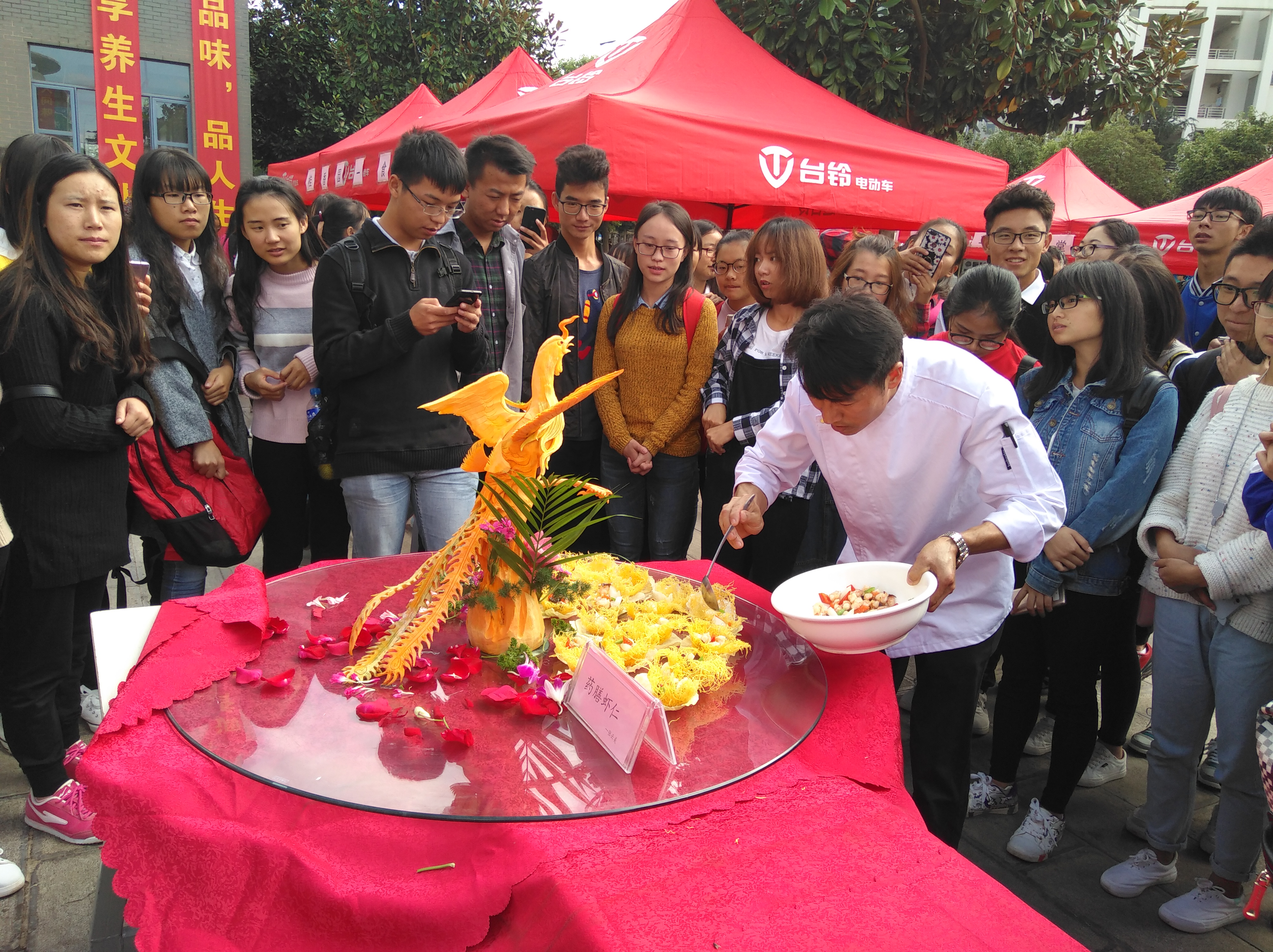 首先登场的是云南交通职业技术学院总厨师张云美老师带来的厨艺表演,随着调料、翻炒,药膳虾仁、三七花溜乌鱼丁、果香蜜枣陆续出锅,吸引了在场观众拿起手机拍照。各食堂也不甘其后,学生二食堂、清真食堂的大厨也纷纷登台献艺。